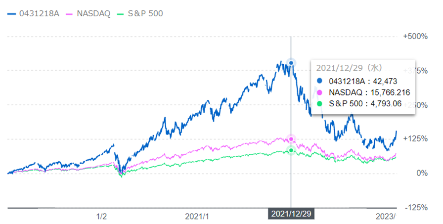 iFreeレバレッジ NASDAQ100設定日(2018年10月19日)から2023年2月1日までのグラフ